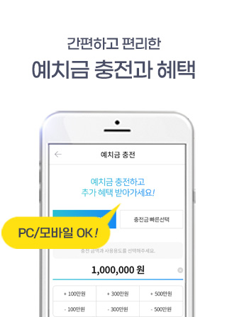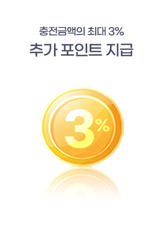 예치금 충전시 충전 금액의 최대 3%의 추가 포인트 지급합니다. 클릭 한 번으로 간편하고 빠르게 구매까지 완벽!